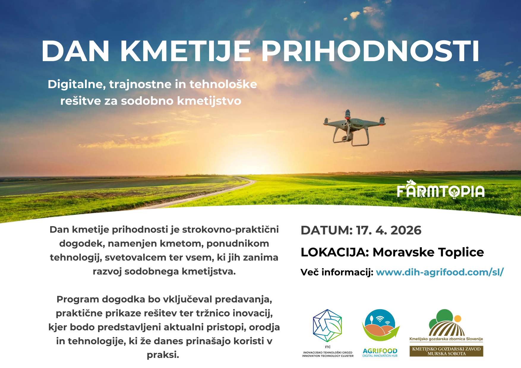 Dan kmetije prihodnosti je strokovno-praktični dogodek, namenjen kmetom, ponudnikom tehnologij, svetovalcem ter vsem, ki jih zanima razvoj sodobnega kmetijstva.