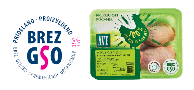 Slika: Zaščitni znak Pridelano-proizvedeno brez GSO in uporaba znaka na izdelku