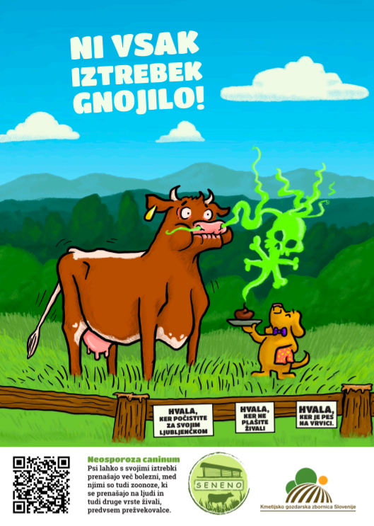 Nepobiranje iztrebkov in smeti ter spuščanje psov po kmetijskih površinah v rastni dobi je težava, ki vpliva na življenje vseh, ki sobivamo v nekem okolju. Morda bo k ozaveščanju doprinesla tabla, ki na humoren način obvešča sprehajalce psov, da naj pobirajo pasje iztrebke in počistijo za seboj.