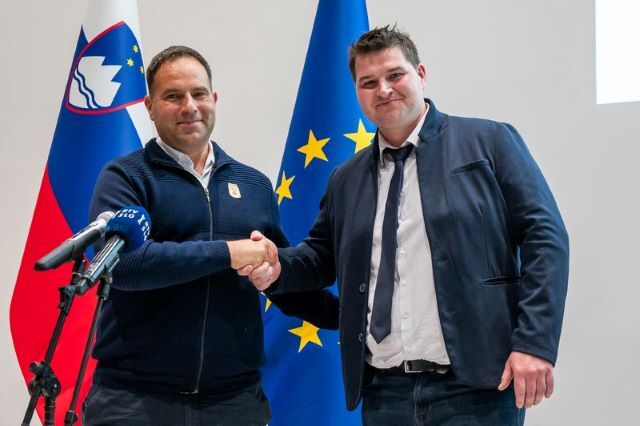 Čestitka IMK 2021 Gregorja Slavca aktualnemu IMK 2023 Antonu Grobelniku. Kdo bo IMK 2025?